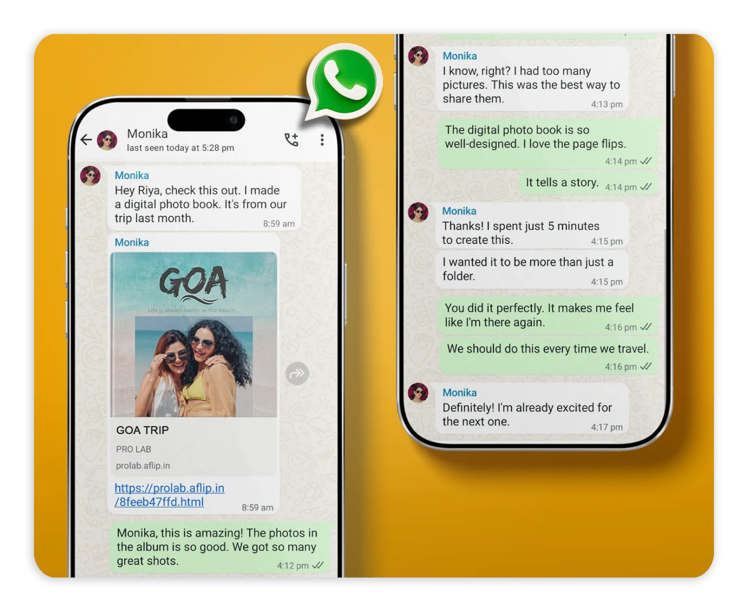 Share your photo book via WhatsApp, email, or social media in seconds. No physical delivery needed.